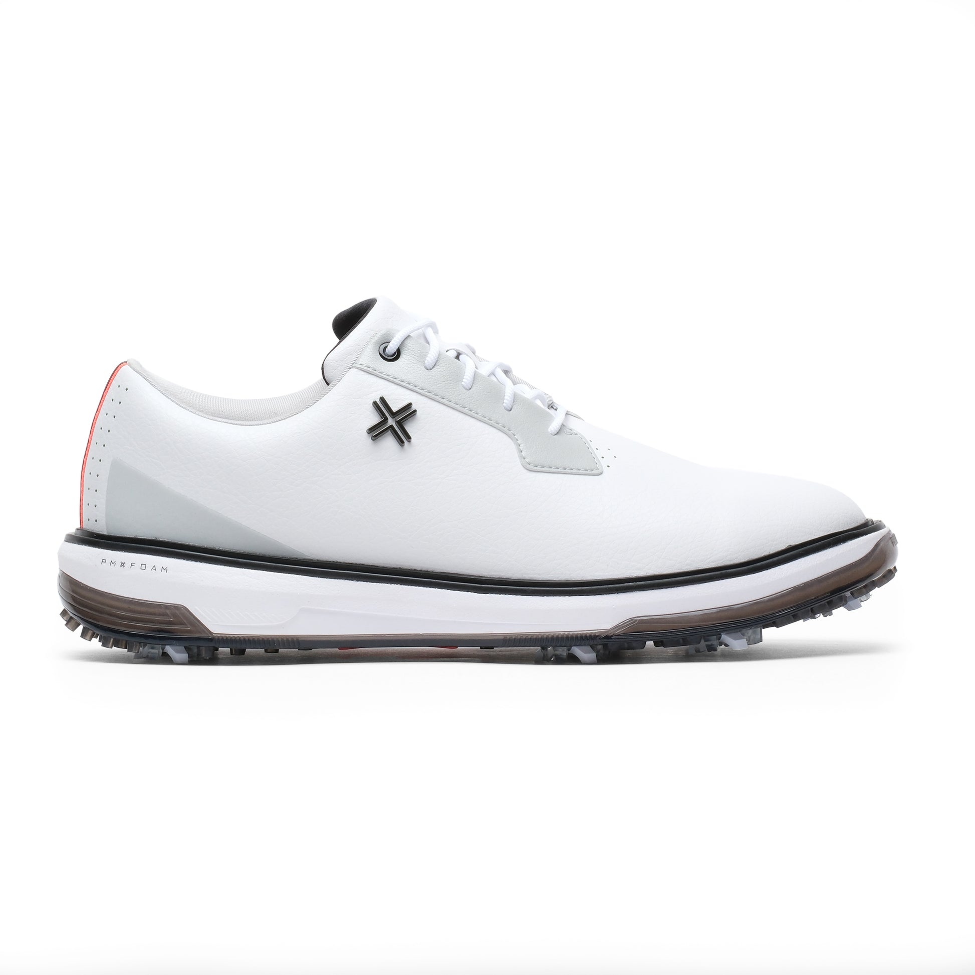 A premium, waterproof microfiber golf shoe engineered with breathable protection, spikeless multidirectional traction, and responsive PMXFOAM cushioning for elevated performance in any condition.